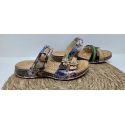 Pantoufle style mocassin bleu marine-blanc-beige avec 2 élastiques Koomac