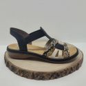 • Mule compensé avec brides rose, argent, noir et motif léopard Rieker