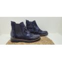 • Mule compensée bleu broderie fleurs beige Maison de l'espadrille