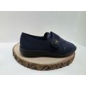 • Mule compensée bleu avec fleurs au centre Fargeot