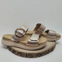 • Mule marron compensée deux velcros boucle ronde ambre semelle blanche Remonte