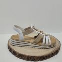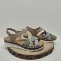 Nu-pied plat avec des brides élastiques taupe, beige et doré Rieker